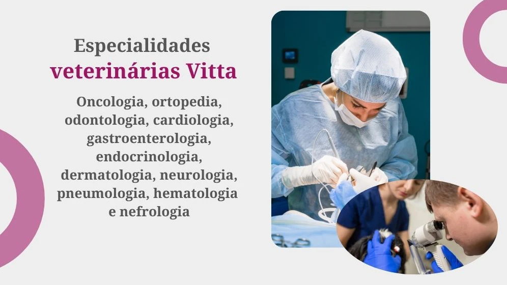 A Vitta especialidades veterinárias surgiu de um sonho de duas veterinárias, parceiras de trabalho, com mesmos valores, ideais e amor aos animais. Após anos atuando juntas, num dos maiores hospitais veterinários do país, decidiram colocar em prática esse sonho, e montaram um espaço acolhedor, com a infraestrutura para o cuidado humanizado de seus pacientes. E convidaram colegas, altamente especializados, para compor esse time de profissionais, focados no cuidado da saúde dos pets.